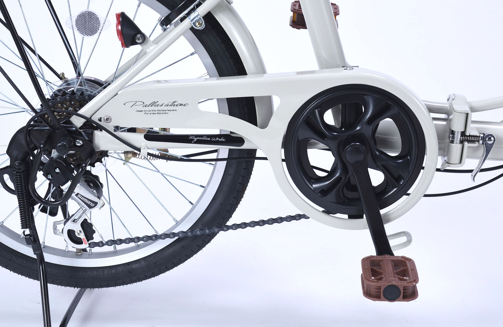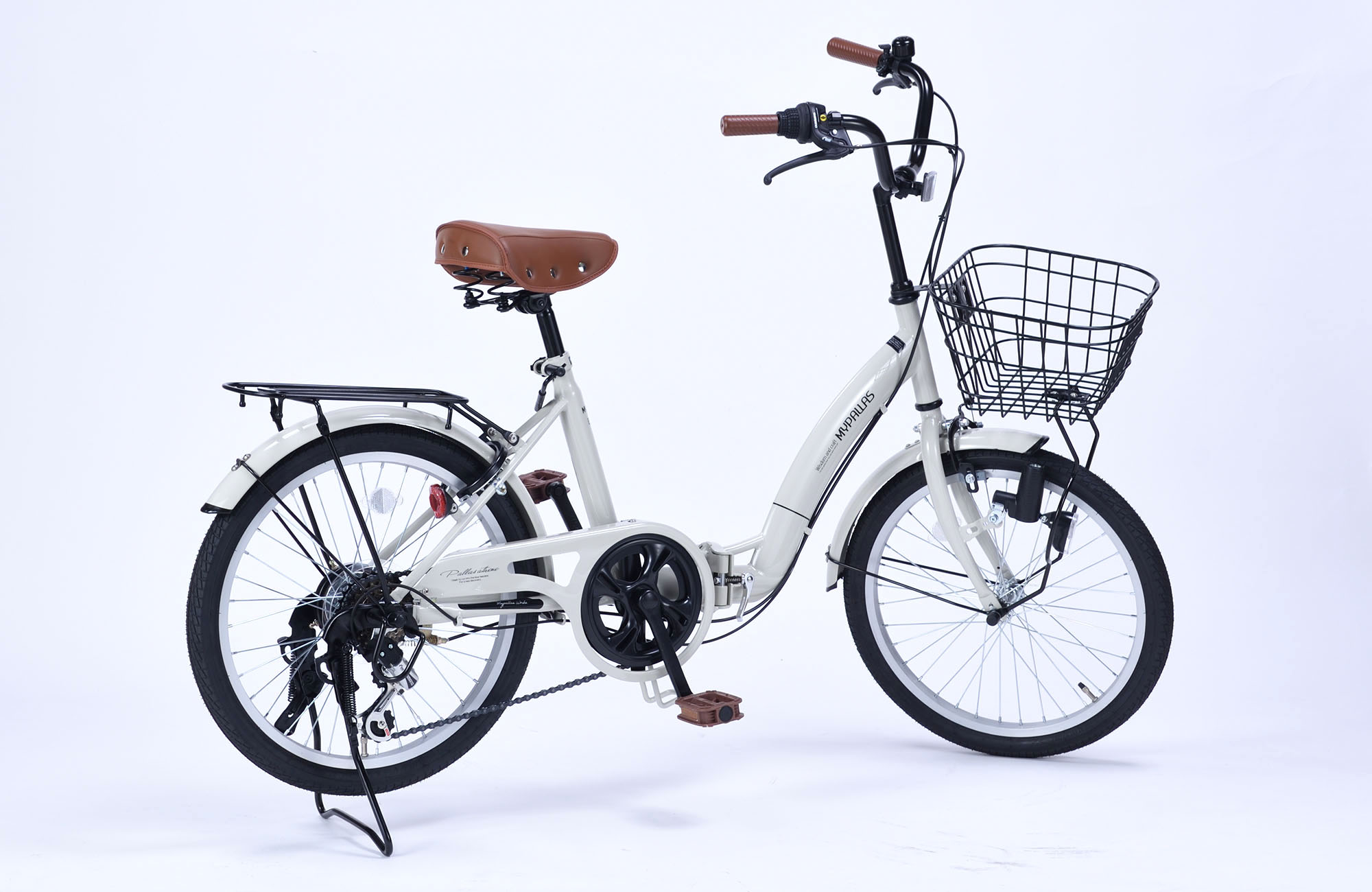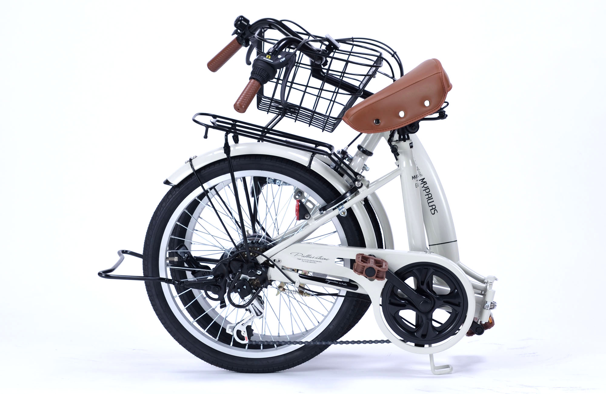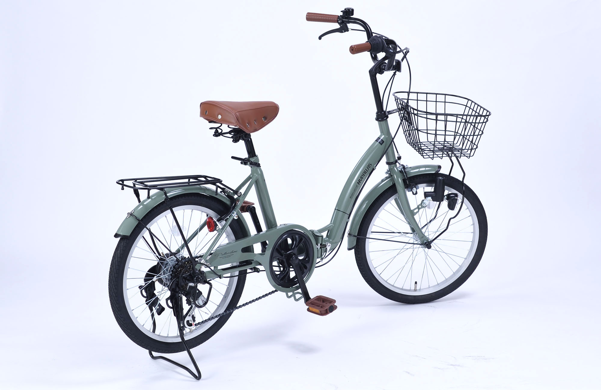 JIS耐振動試験合格品 フレーム/スチール リム/アルミ 前輪ブレーキ/キャリパーブレーキ 後輪ブレーキ/バンドブレーキ ハンドル・バー/セミアップタイプ差込式 備考/シマノ製6段変速・折畳ジョイント部二重ロック方式・チェーンカバー・バスケット・ダイナモLEDライト・リング錠・テリー型サドル・リアキャリア(荷台) 他