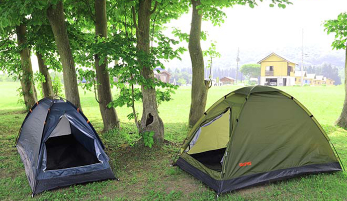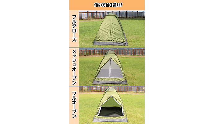 ポール2本の簡単構造なので1人でも短時間で設営できます。