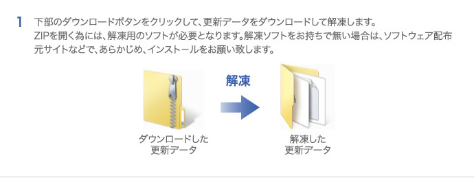 ダウンロードを行い解凍後にMicroSDカードに複写して更新を行って下さい。